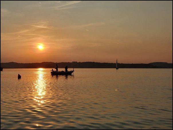 Mit herrlichem Ausblick auf den Hafen und den See genossen wir ein sehr leckeres Abendessen. Frischer Fisch ist eben was Feines. Wir beobachteten die Leute um uns herum und die ein- und ausfahrenden Segler. Hier war reges Treiben.