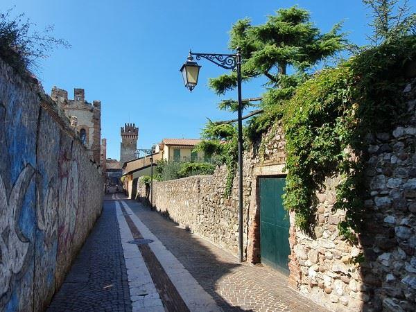 Direkt am Wasser und sozusagen auch am südlichen Ortseingang befindet sich die sechstürmige Scaligerburg aus dem 9. Jahrhundert mit der Parkanlage der Villa Bernini. Einen Blick durch das Tor erhascht, lief ich die Via Rosenheim entlang. Hier befindet sich auch das Stadtwappen von Rosenheim, Partnerstadt von Lazise.