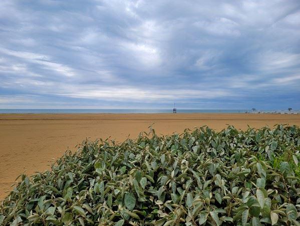 Etwa eine Stunde spazierten wir die Promenade entlang, anschließend verblieben Anton und die Hunde am Camper ich machte mich auf den Weg nach Bibione. Knapp 5 Kilometer ging es nun zuerst einmal komplett durch die Fußgängerzone und den Ort, der aber mit Ausnahme weniger Souvenirgeschäfte wie ausgestorben wirkte. Die meisten Läden räumten gerade erst ihre Waren ein. Zurück entlang des Strandes machte schließlich endlich der Himmel auf und die Sonne kam zum Vorschein.