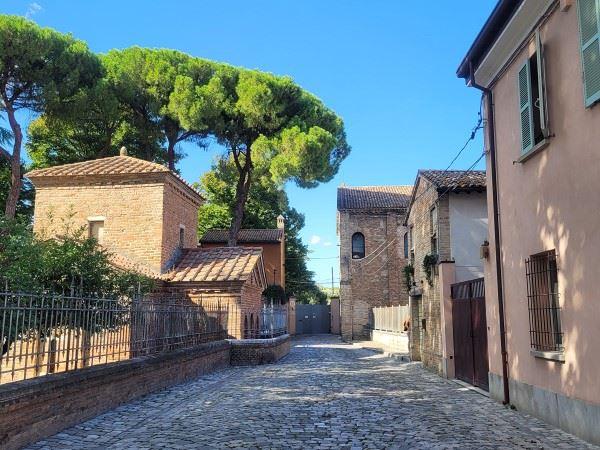 Allein von außen sah die Anlage schon sehr beeindruckend aus. Ich spazierte die kleinen Gassen entlang, vorbei am Mausoelum Galla Placidia und der Chiesa die Santa Croce zum Monastero Clarisse Capuccine die Ravenna. Der gesamte Weg ist mit Kopfsteinpflaster gesäumt, pastellfarbene, alte Häuser reihen sich aneinander. Abseits der Touristenpfade war hier nichts los und irgendwie wirkte es wie im Mittelalter hier. Fehlt nur noch der Ritter auf dem Pferd.