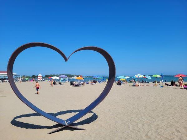 So langsam machte ich mich wieder auf den Rückweg, blieb zwischendurch aber auch immer wieder für Fotos stehen. Das Metallherz mit Blick auf's Meer dufte dabei natürlich nicht fehlen. Außerdem sah ich mir den Doggy Beach etwas näher an. Also an Hundestränden gibt es hier in Lignano wirklich reichlich. Ein sehr tierlieber Ort, wenngleich die gut ausgestatteten Hundestrände auch kräftig zulangen. Hier zahlt man je nach Platz (von der einfachen Liege bis hin zu eingezäunten Bereichen und richtigen Lounges ist alles vorhanden) zwischen 37 bis 55 € pro Tag. Auch Wochenbuchungen und Saisonkarten sind möglich. Dafür gibt es hier aber auch ein Café, einen Hundeshop und vieles mehr. Und ich muss schon sagen: Stylisch mit Abstand der schönste Doggy Beach, den ich je gesehen habe. Sogar einen Whirlpool gibt es.