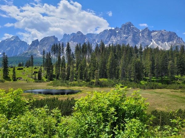 Die Temperaturen hatten sich ab Gardasee Stück für Stück nach unten bewegt. Klar, wir waren hier auf 1.500 Meter Höhe. Das war schon ein Unterschied. Bei Sonne genoss man auch hier um die 25 Grad. Doch kaum schob sich eine Wolke davor, kam der Wind und man war froh um eine Weste. Doch das störte uns nicht. Am See war es uns ohnehin stellenweise zu heiß, außerdem waren wir mehr als zufrieden mit dem aktuellen Wetter. Zu Beginn der Reise sahen die Wettervorhersagen für Sexten nämlich ziemlich schlecht aus. Vorhergesagt waren 9 Grad und Dauerregen. Das bekamen wir zum Glück nicht.